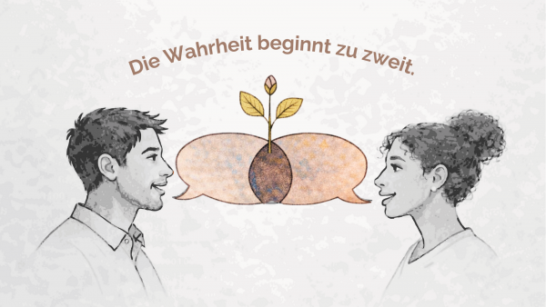 Im menschlichen Coaching entsteht eine beidseitige professionelle und persönliche Beziehung. Sie bildet den Raum, in dem das dialogische Credo wirksam wird: Die Wahrheit beginnt zu zweit.